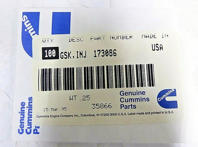 173086 Cummins OEM Gasket, Injector Pack of 100